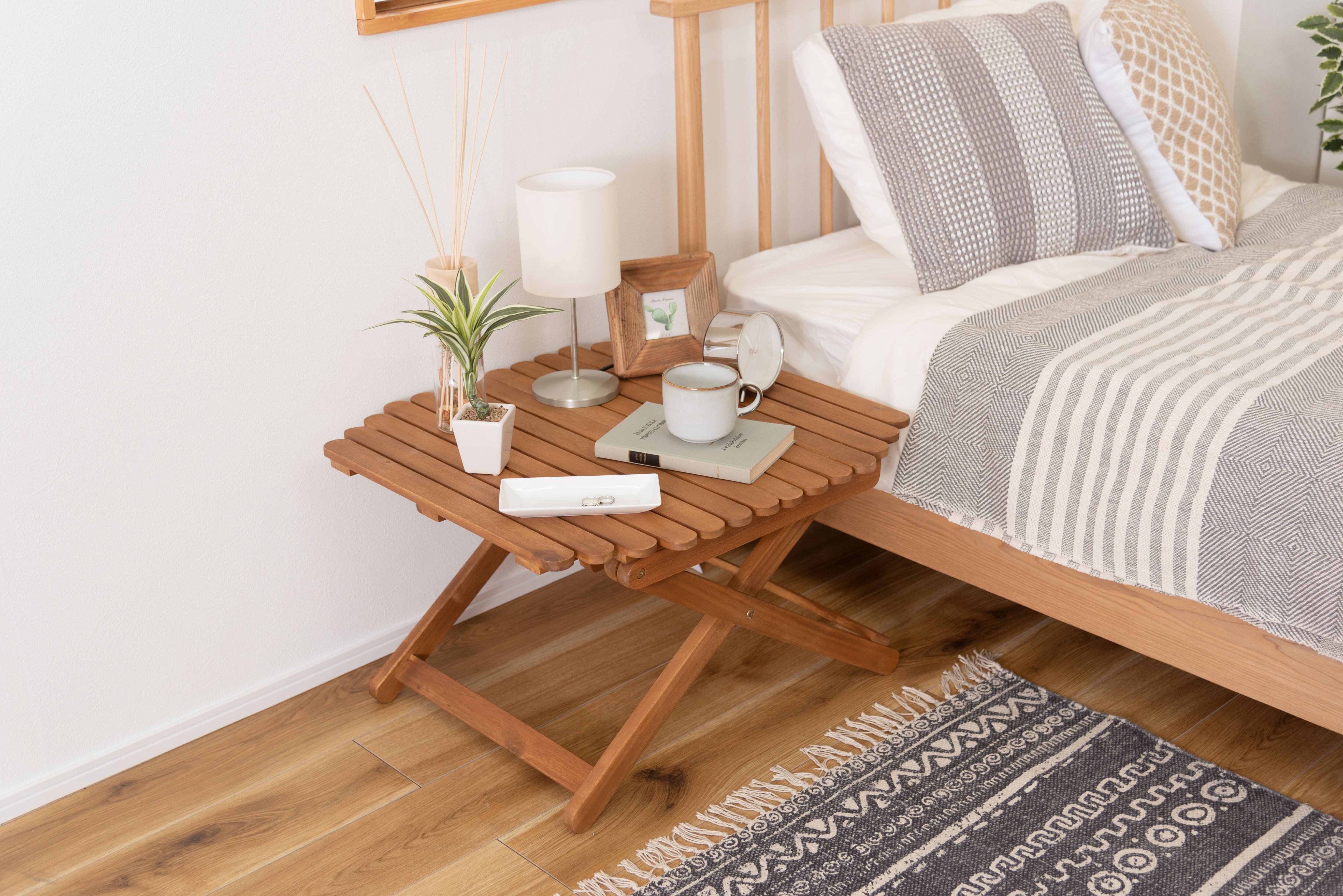 折りたたみが可能なローテーブルになります。室内外問わずお使いいただける商品です。