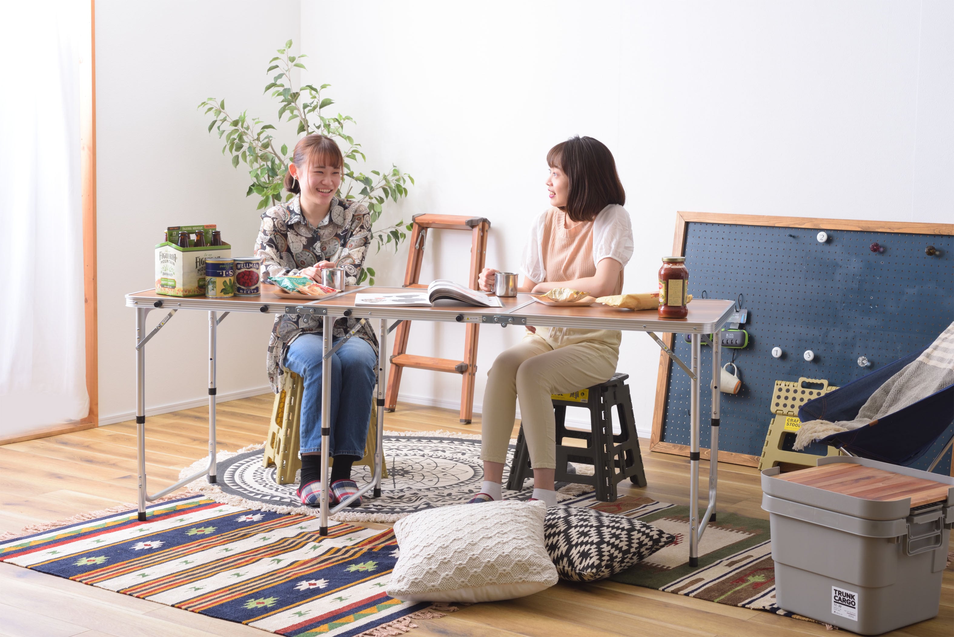 W180の大型フォールディングテーブル。アウトドアはもちろん、ちょっとした会議や作業台、イベントの受け付け用としても使えます。3等分に折れ曲がりコンパクトになるので手軽に持ち運びができ、場所を取らず収納ができます。高さも3段階調節ができますので高さが異なるチェア、スツールなどに合わせることが可能です。