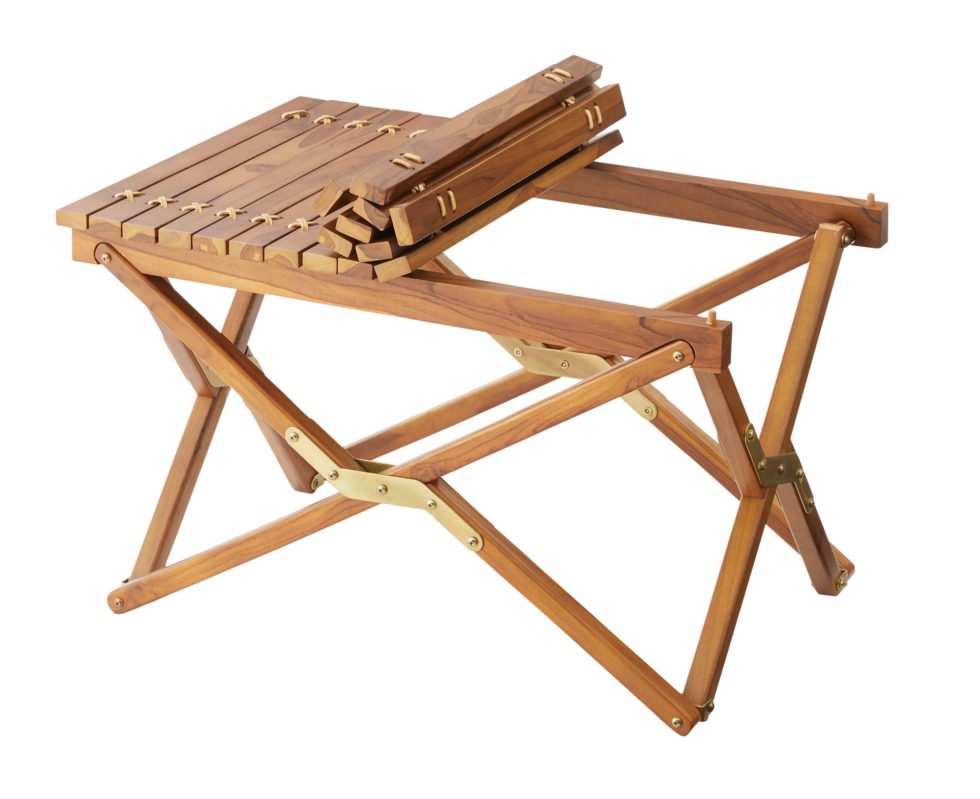 小さく収納・持ち運びができるだけでなく、チーク材と本革の風合いはインテリアとしても活躍します。