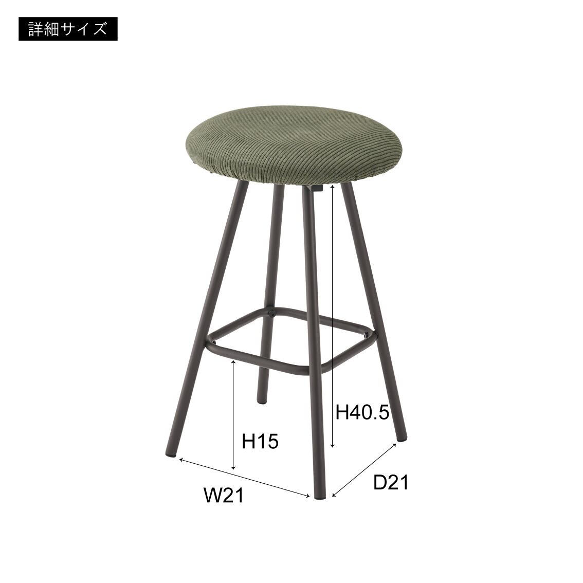 スツール 椅子 イス いす おしゃれ コーデュロイ スチール 軽量 丸型 丸椅子 円形 ラウンド アンティーク チェア モダン グリーン グレー